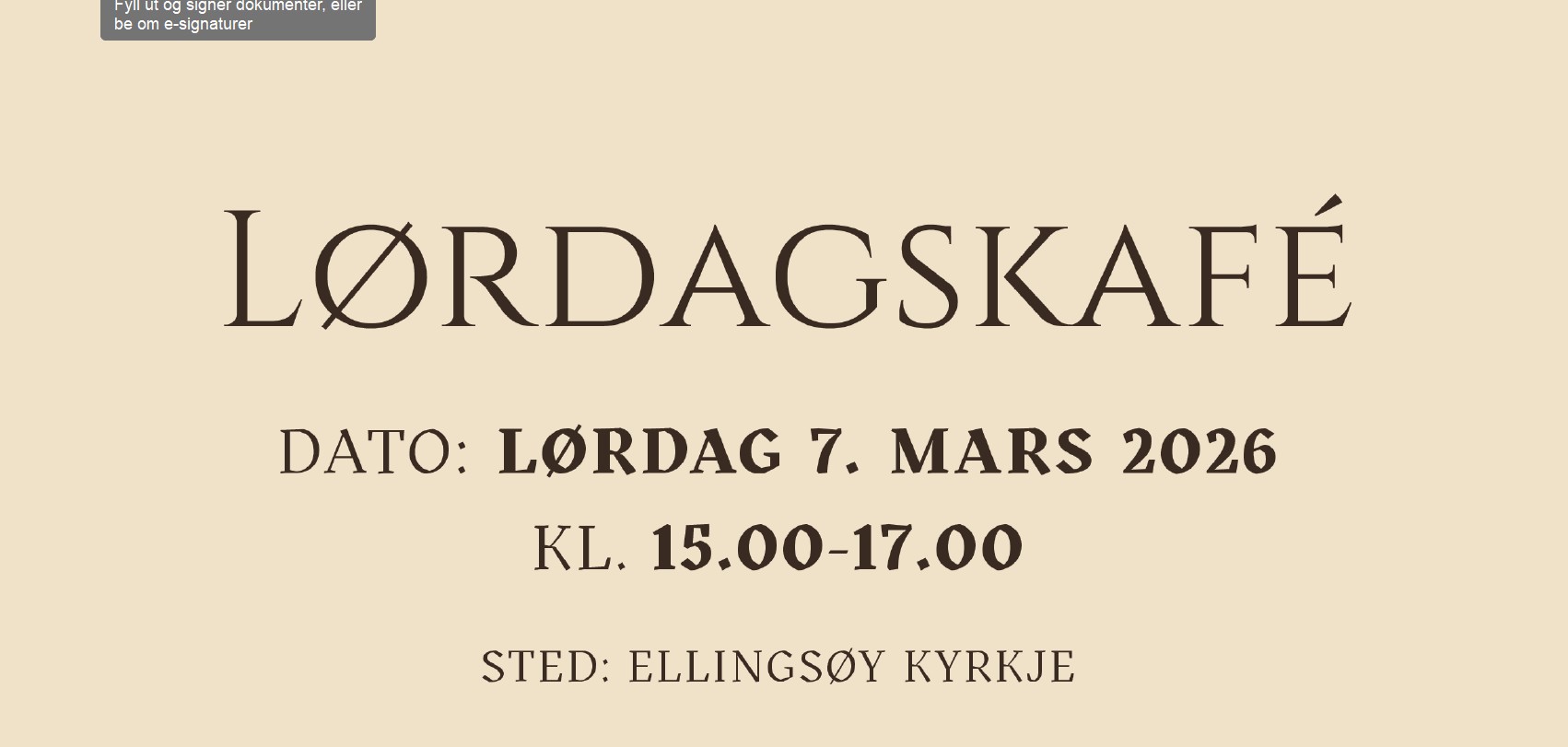 Laurdag 07.mars kl 15.-17.00 blir det igjen uformell LAURDAGSKAFÉ i kyrkjelydssalen i Ellingsøy kyrkje.